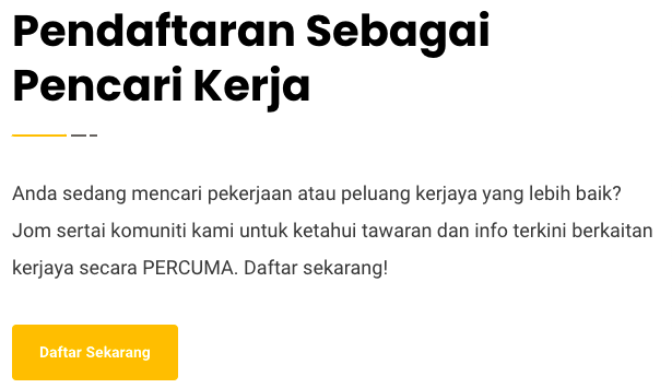Klik Daftar Sekarang di bahagian Pendaftaran Sebagai Pencari Kerja.