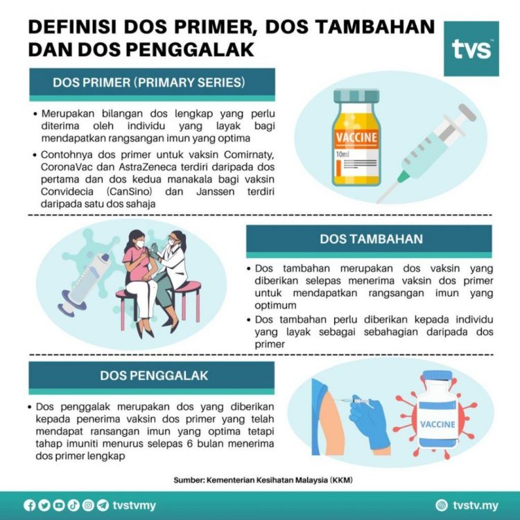Seringkali kita mendengar tentang dos penggalak, dos tambahan dan dos primer, namun tak ramai yang tahu apa beza ketiga-tiga dos ini. Jika nak tahu perbezaan antara 3 dos ini, ikuti perkongsian di bawah.