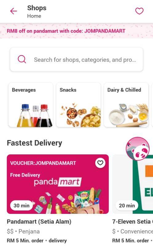 - Pilih PANDAMART (pada bahagian Fastest Delivery)