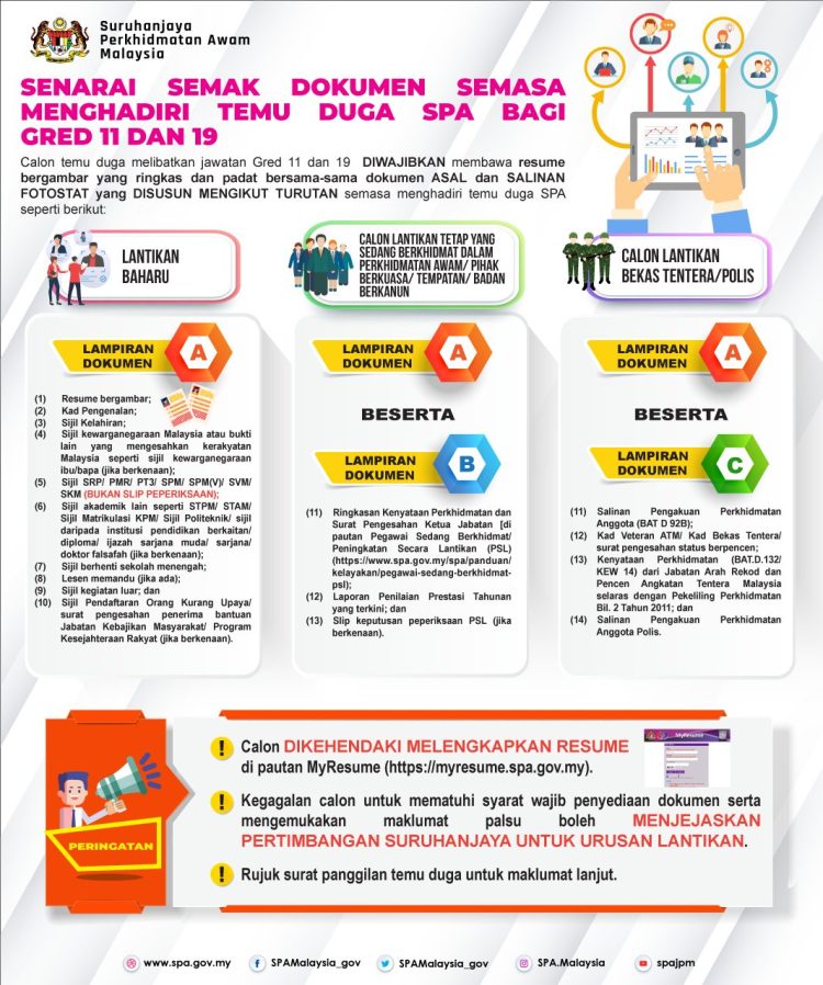 Baca juga: SPA Kongsi Senarai Semak Dokumen Semasa Menghadiri Temuduga SPA Bagi Gred 11 & 19