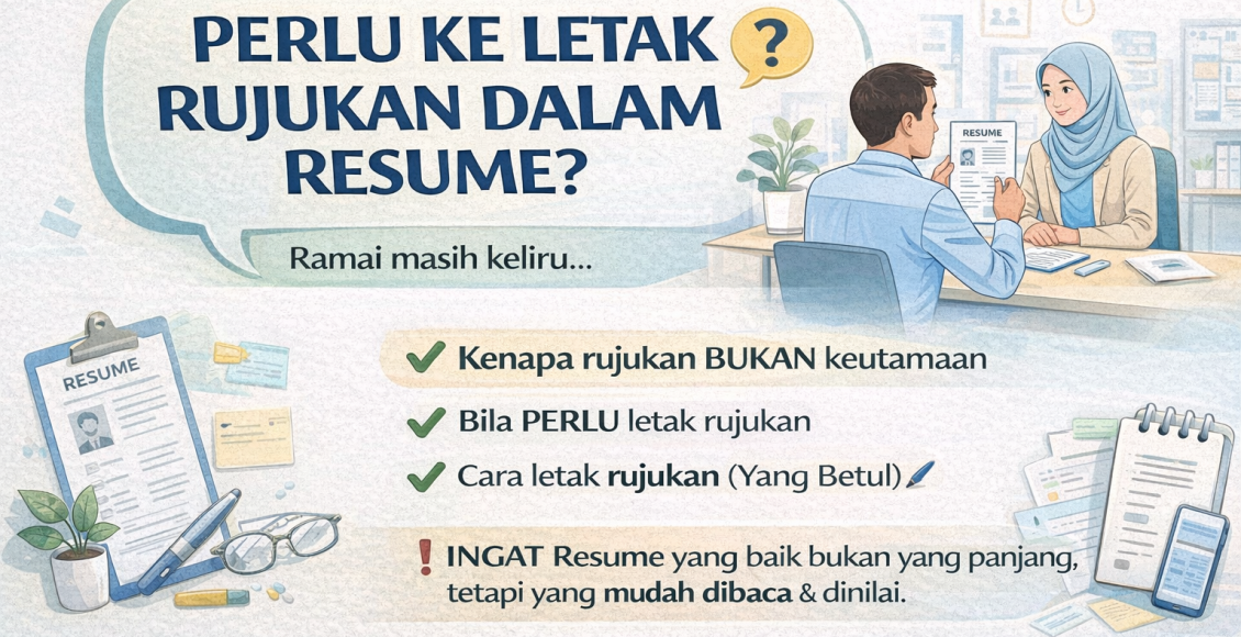 Dalam artikel ini, admin kongsikan panduan yang ringkas tetapi lengkap: bila rujukan perlu diletakkan, bila tidak perlu, siapa yang sesuai dijadikan rujukan, serta cara menyediakan rujukan yang betul dan profesional.
