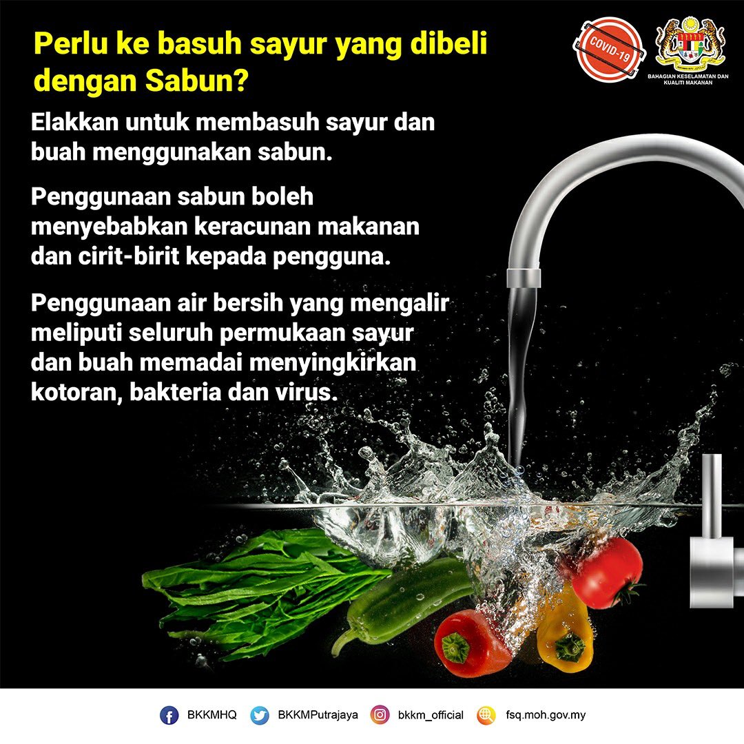 Tidak perlu pun sampai basuh dengan sabun barang dapur semata mata untuk nyahkuman. Tetapi mestilah dibasuh dengan air sebelum dimasak dan dimakan. Ada juga yang sarankan untuk rendam baranag dalam air garam.