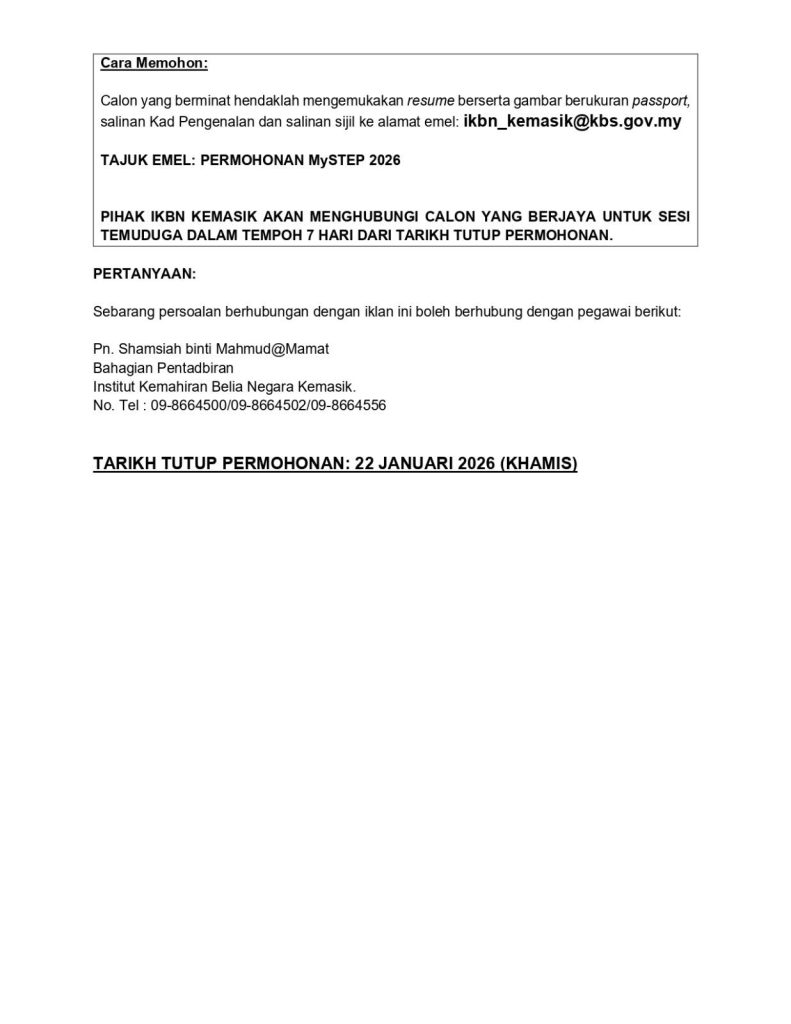 Cara Memohon Jawatan MySTEP IKBM Kemasik