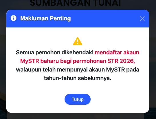 Makluman penting ini dikeluarkan bagi memastikan semua maklumat penerima STR dikemas kini sepenuhnya mengikut sistem baharu yang digunakan bagi tahun 2026.