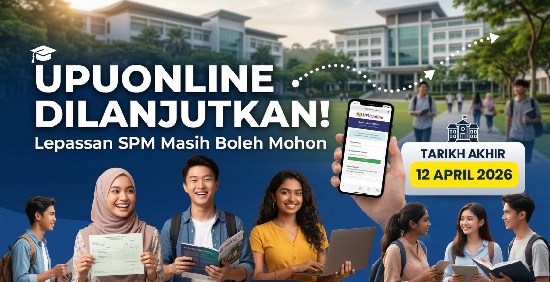 Pelanjutan tempoh permohonan UPUOnline bagi lepasan SPM sehingga 12 April 2026 memberi peluang tambahan kepada pelajar untuk merancang masa depan pendidikan mereka dengan lebih baik. Dengan lebih 363 program pengajian ditawarkan melalui universiti awam, politeknik, kolej komuniti dan institusi pendidikan MARA, pelajar mempunyai pelbagai pilihan laluan pendidikan selepas tamat SPM.