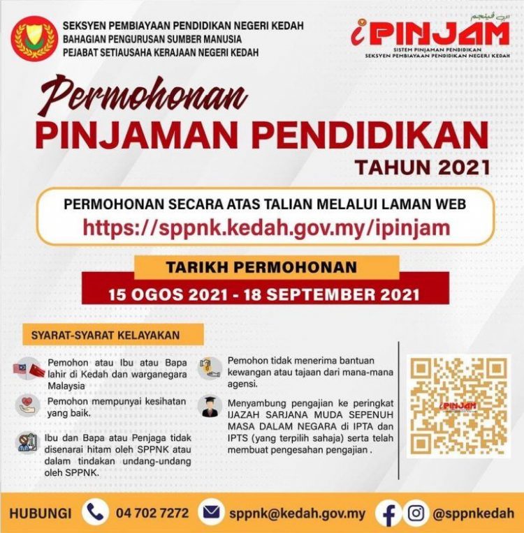 Anak Kedah yang akan sambung pengajian dan memerlukan pinjaman yang ditawarkan boleh buat permohonan secara atas talian di pautan berikut: