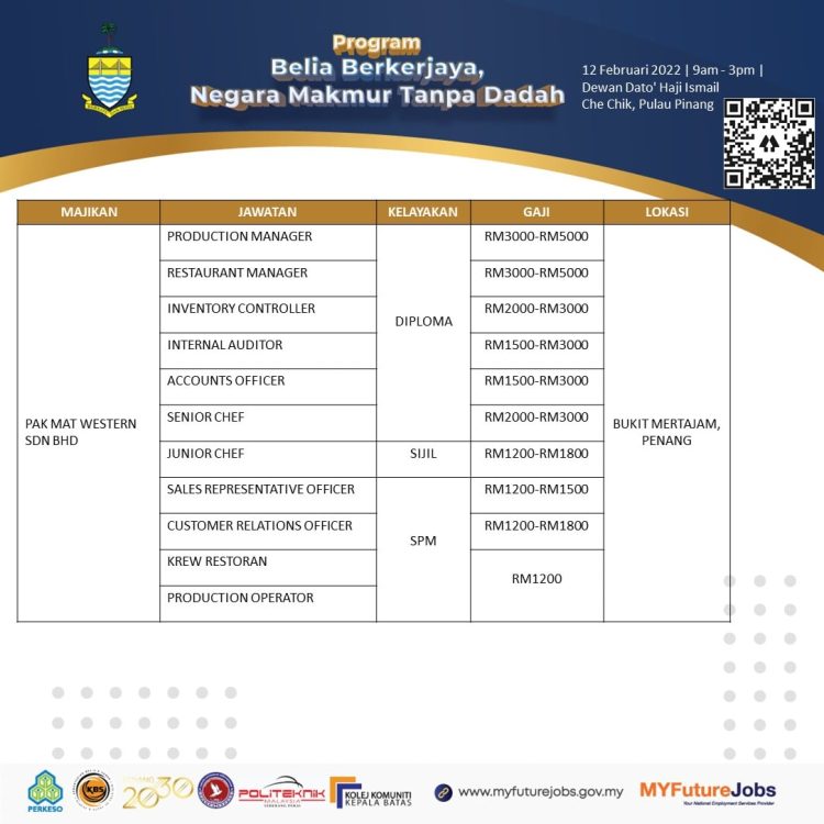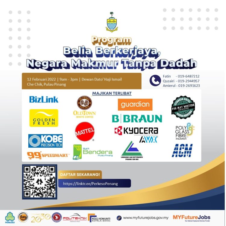 Panggilan buat belia yang masih menganggur di negeri Pulau Pinang! Pihak PERKESO Negeri Pulau Pinang akan mengadakan temuduga terbuka secara fizikal bagi membantu graduan dan pencari kerja mendapatkan peluang pekerjaan dan mengisi pelbagai kekosongan jawatan yang ditawarkan oleh pelbagai majikan.