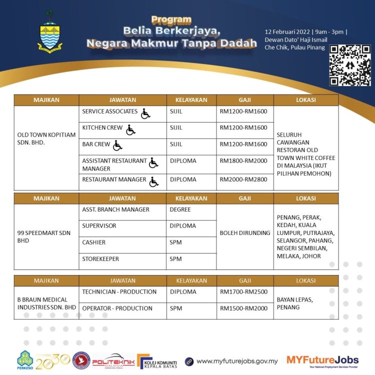 Berikut adalah senarai majikan yang terlibat menawarkan jawatan kosong: