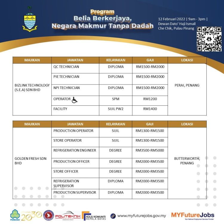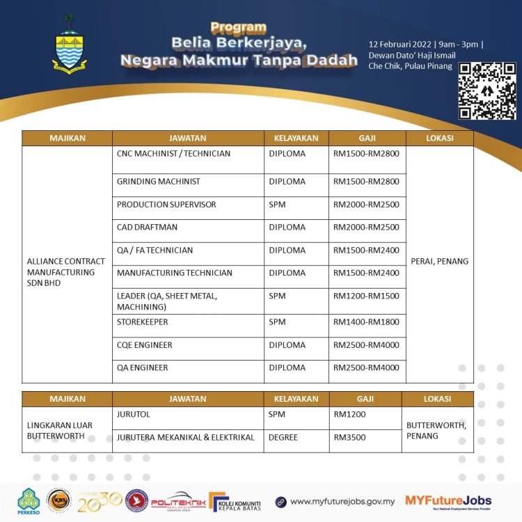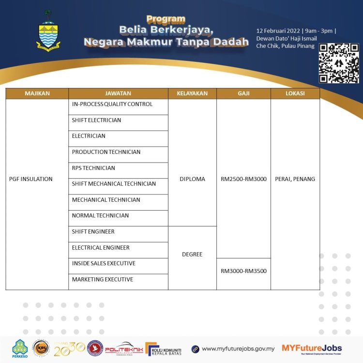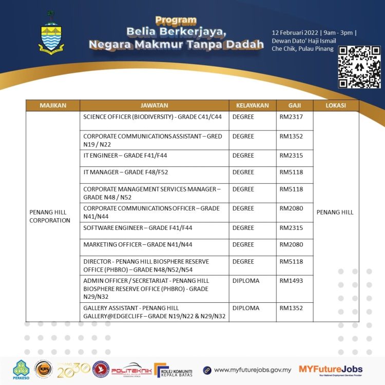 Panggilan buat belia yang masih menganggur di negeri Pulau Pinang! Pihak PERKESO Negeri Pulau Pinang akan mengadakan temuduga terbuka secara fizikal bagi membantu graduan dan pencari kerja mendapatkan peluang pekerjaan dan mengisi pelbagai kekosongan jawatan yang ditawarkan oleh pelbagai majikan.