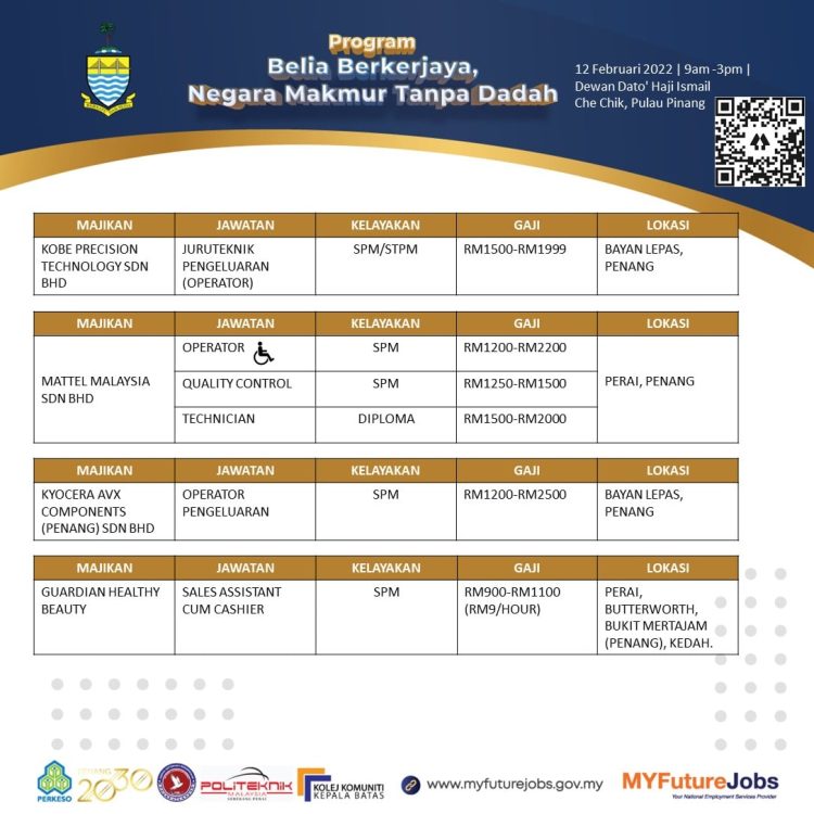 Ikuti perkongsian di bawah untuk maklumat lanjut kerja yang ditawarkan dan cara buat pra-pendaftaran