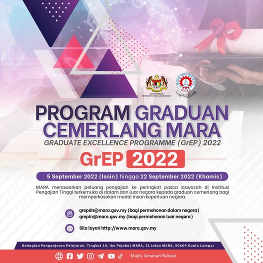 Semak syarat kelayakan dan maklumat lanjut permohonan Program Graduan Cemerlang MARA (GrEP) bagi tahun 2022.