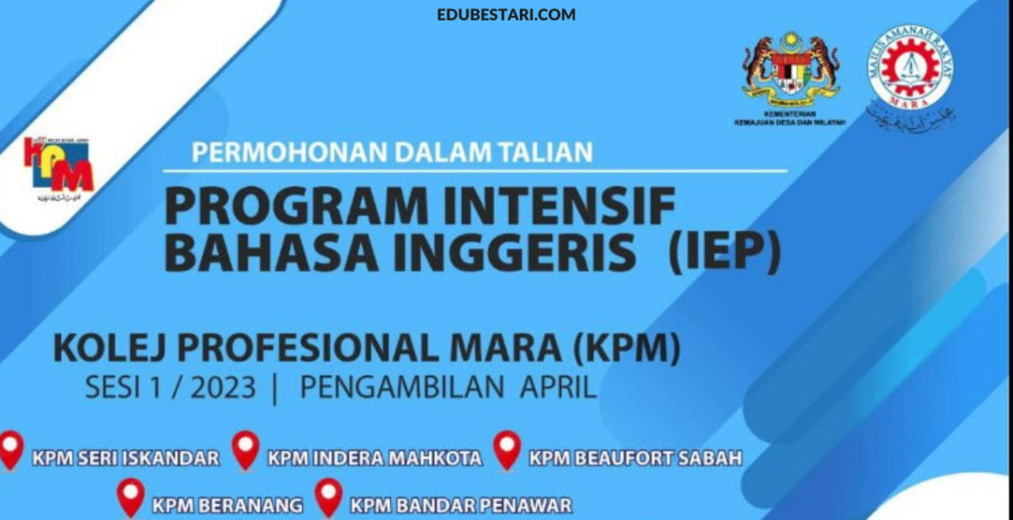 Calon-calon yang layak dan berminat akan menjalani program yang bertempat di KPM Bandar Penawar, Johor, Beranang, Selangor, Indera Mahkota, Pahang, Seri Iskandar, Perak atau Beaufort, Sabah. Permohonan Program Intensif Bahasa Inggeri (IEP) KPM kini dibuka secara dalam talian bagi pengambilan April 2023.