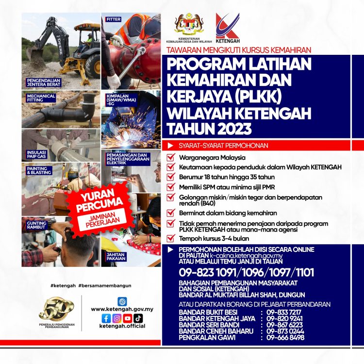 - Program: Kursus Kemahiran Program Latihan Kemahiran dan Kerjaya (PLKK) Wilayah KETENGAH Tahun 2023