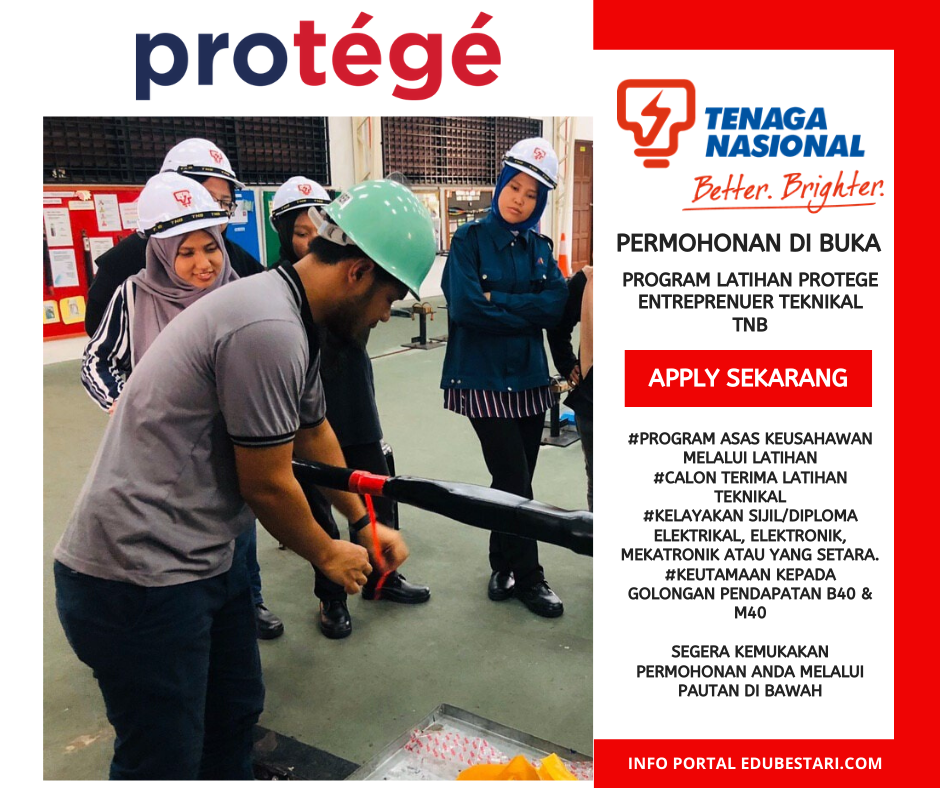Terkini, TNB telah menjalankan Program Latihan Protege Entreprenuer Teknikal TNB dikhaskan untuk lepasan Sijil, Diploma Elektrikal, Elektronik, Mekatronik atau yang setara.