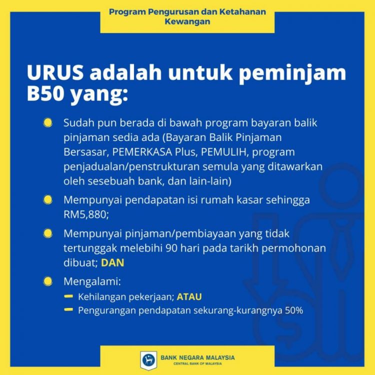 URUS merupakan program sokongan bantuan bayaran balik pinjaman yang komprehensif dan akan ditawarkan kepada individu yang: