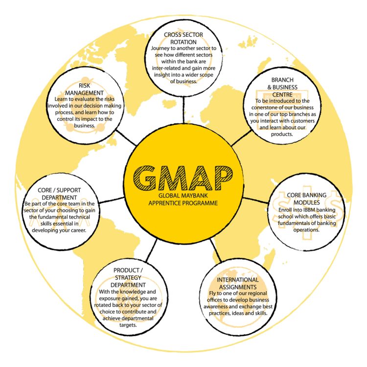 Anda graduan yang masih mencari peluang untuk bina kerjaya? Maybank mempelawa graduan yang berkelayakan dan berminat untuk sertai Global Maybank Apprentice Programme (GMAP) atau Program Perantis Global Maybank untuk menyediakan graduan dengan platform strategik untuk memulakan kerjaya mereka.