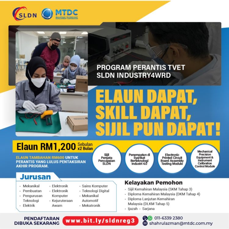 Tawaran Program Perantis TVET SLDN Industry4wrd. Terima Elaun RM1800, Latihan Kemahiran & Sijil