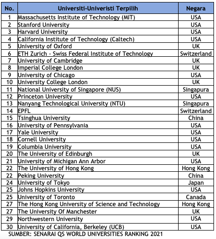 SENARAI UNIVERSITI BAGI PROGRAM PINJAMAN PENGAJIAN KE UNIVERSITI TERBAIK DUNIA