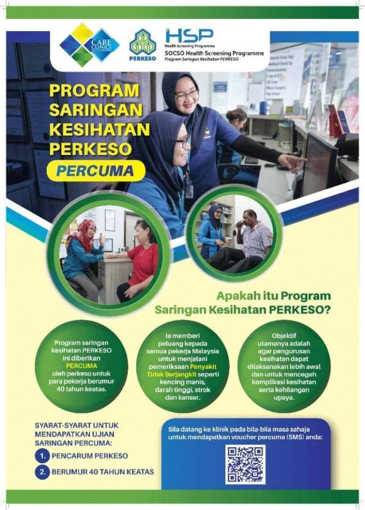 Ikuti perkongsian di bawah untuk maklumat lanjut tawaran Program Saringan Kesihatan PERKESO dan panduan membuat pemeriksaan kesihatan secara percuma melalui program ini.