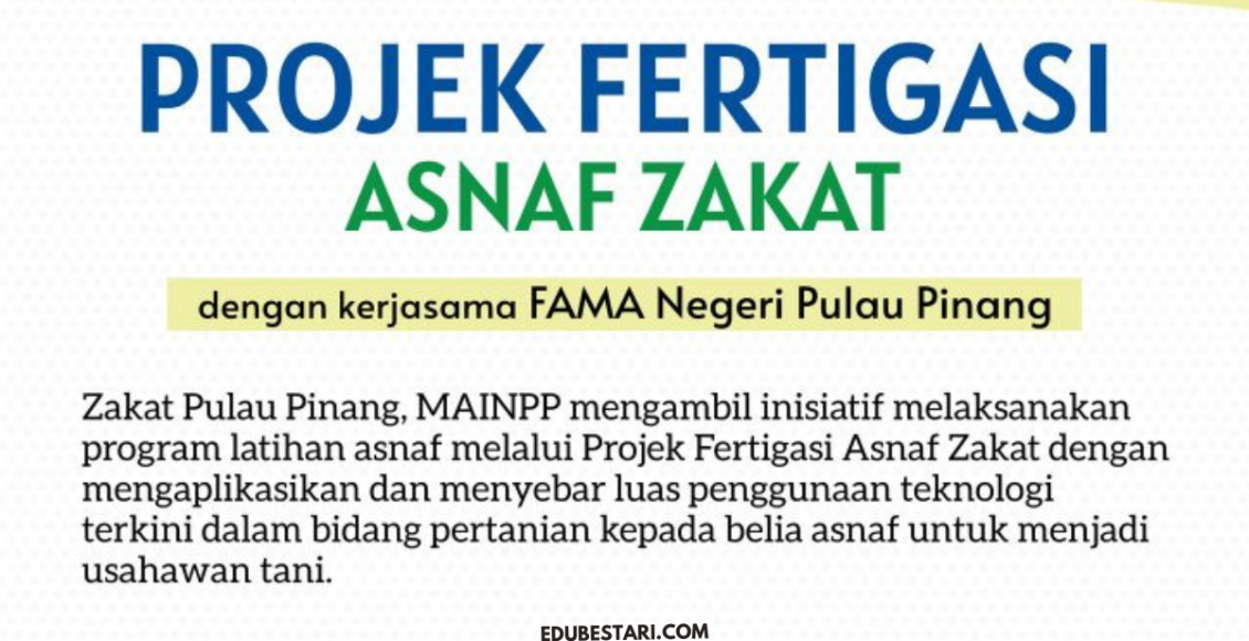 Zakat Pulau Pinang, Majlis Agama Islam Negeri Pulau Pinang (MAINPP) dengan kerjasama mengambil inisiatif melaksanakan program latihan asnaf melalui Projek Fertigasi Asnaf Zakat dengan mengaplikasikan dan menyebar luas penggunaan teknologi terkini dalam bidang pertanian kepada belia asnaf untuk menjadi usahawan tani.