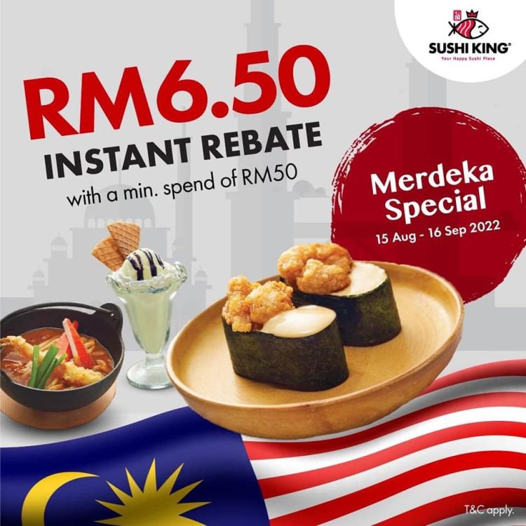 Dapatkan rebat segera RM6.50 dengan berbelanja minimum RM50 di Sushi King.