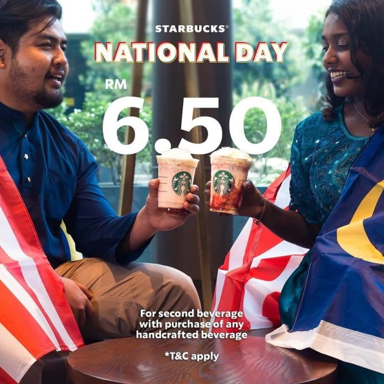 Dapatkan minuman di Starbucks dengan harga RM6.50 bagi minuman kedua yang dibeli.