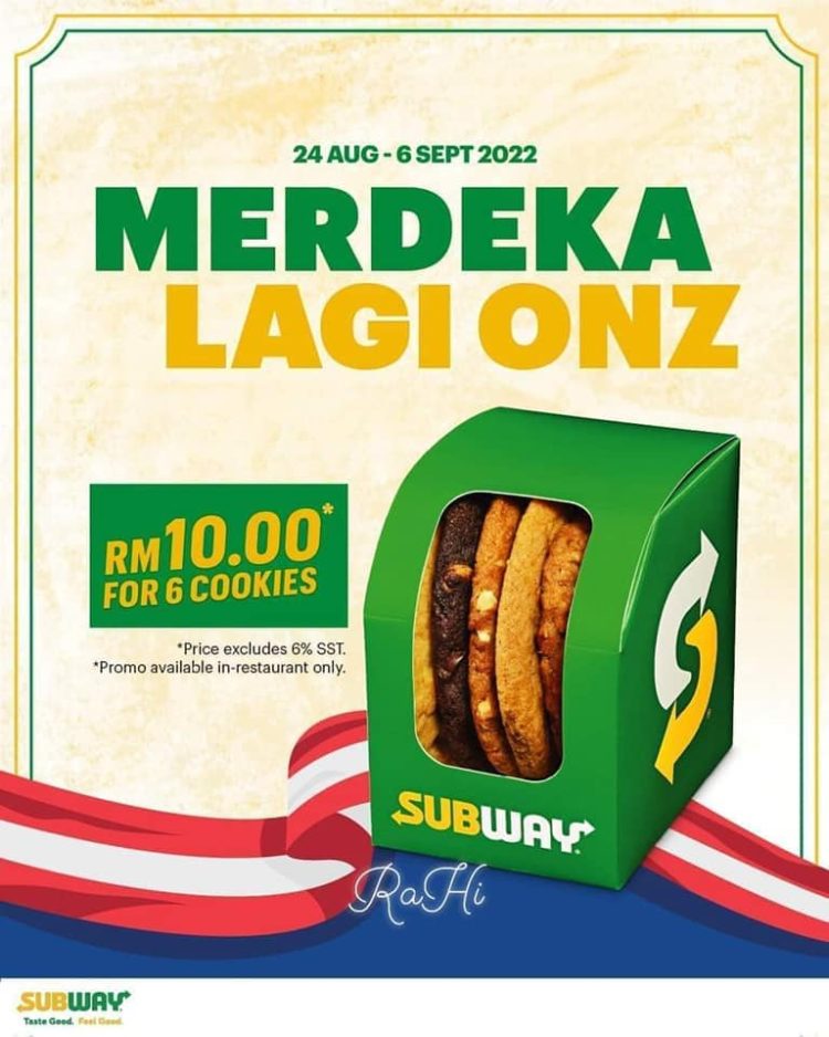 Dapatkan cookies Subway dengan harga RM10 untuk 6 keping cookies.