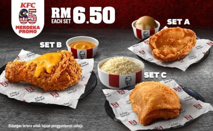 KFC menawatkan promo set Merdeka dengan harga RM6.50 sahaja.