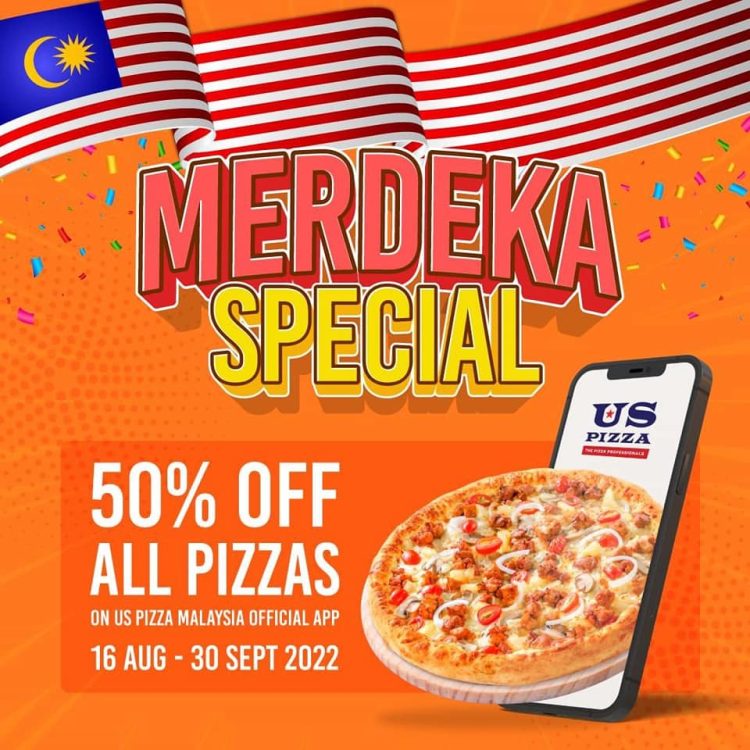 US Pizza menawarkan diskaun 50% bagi setipa pizza.