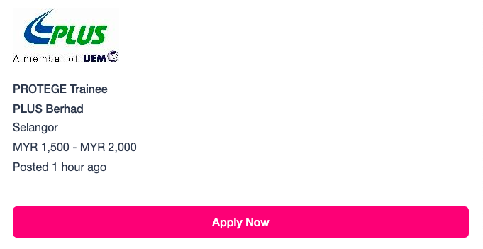 Tawaran ini adalah sangat sesuai untuk graduan baru yang ingin mendapatkan pengalaman kerja pertama mereka dalam industri lebuh raya. Bagi yang berminat nak bina kerjaya melalui program PROTEGE PLUS ini, anda boleh buat permohonan segera.