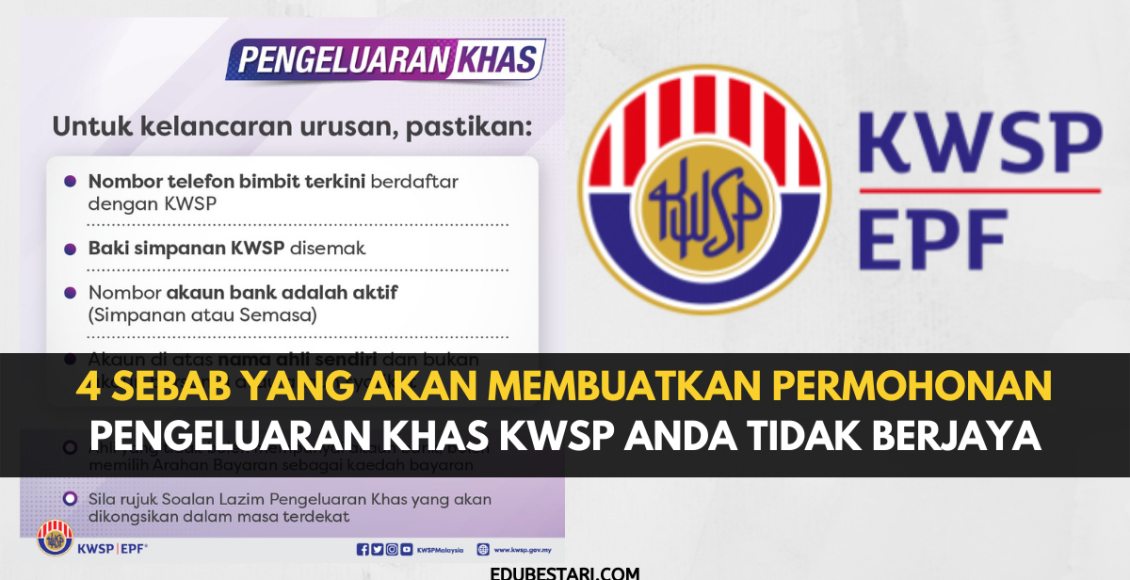 Antara 4 sebab yang boleh menyebabkan permohonan Pengeluaran Khas KWSP anda gagal adalah: