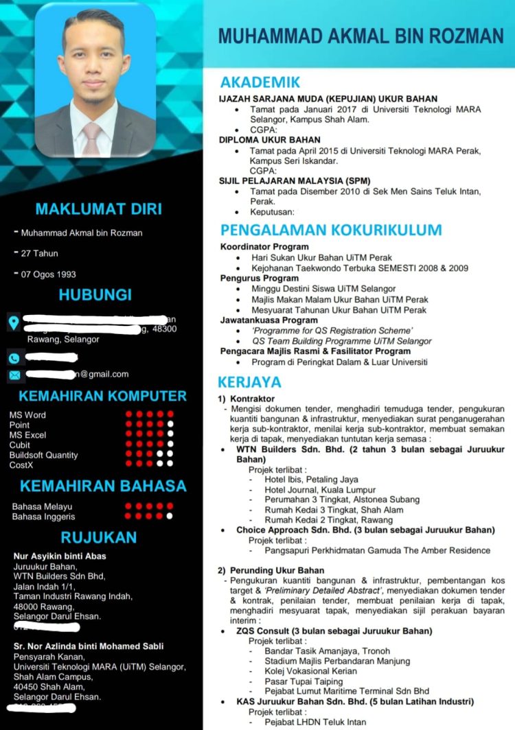 Berikut adalah contoh resume yang dikongsikan oleh calon: