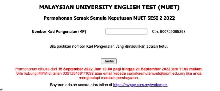 Permohonan Rayuan Semakan Semula Keputusan MUET Sesi 2 2022