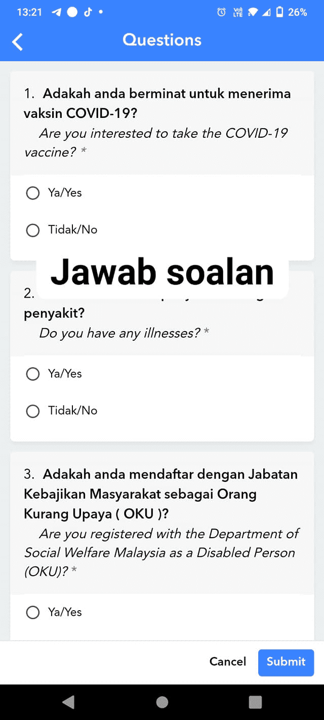 Jawab Soalan MySejahtera