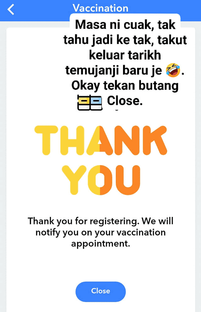 Selesai remove dependent, anda akan dapat paparan seperti berikut apabila klik Covid-19 Vaccination.