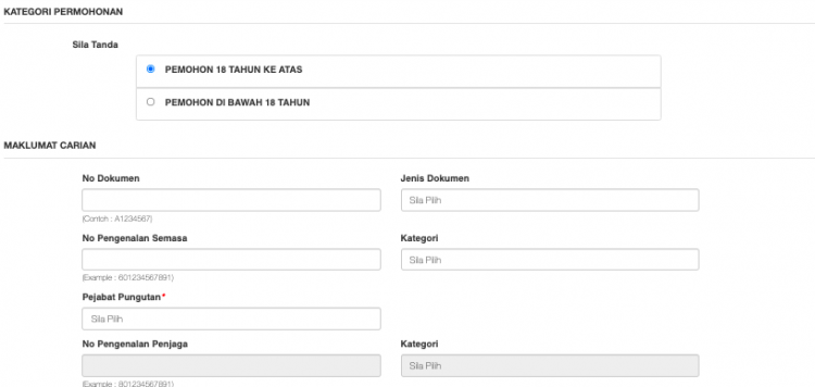 - Bagi pemohon di bawah umur 18 tahun: Hanya penjaga yang sah yang telah memberi kebenaran semasa permohonan yang terdahulu dibenarkan membuat permohonan secara atas talian. Penjaga yang sah perlu hadir di pejabat imigresen semasa pengambilan pasport tersebut. Jika penjaga tidak hadir bersama, pasport tersebut tidak akan diserahkan.