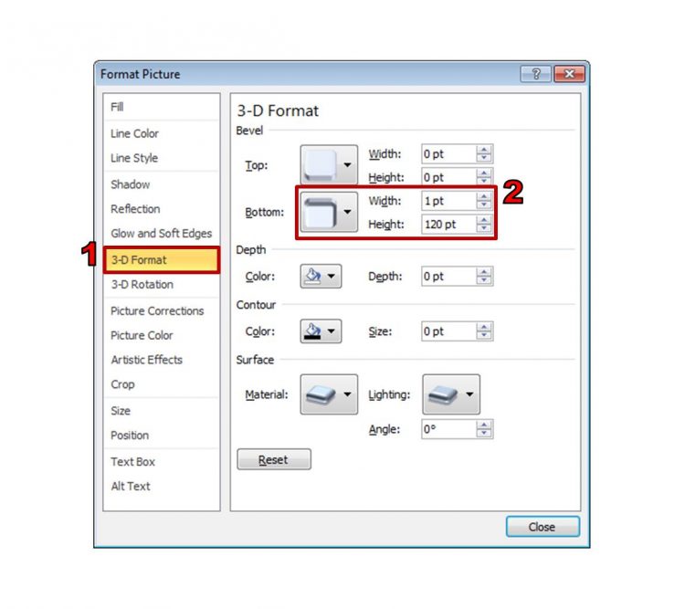 4) Sekarang, klik 3D Format, tukar width dan height macam dalam gambar. Kalau rasa kurang sesuai, boleh main try and error width dengan height tu supaya dapat 3D yang terbaik.