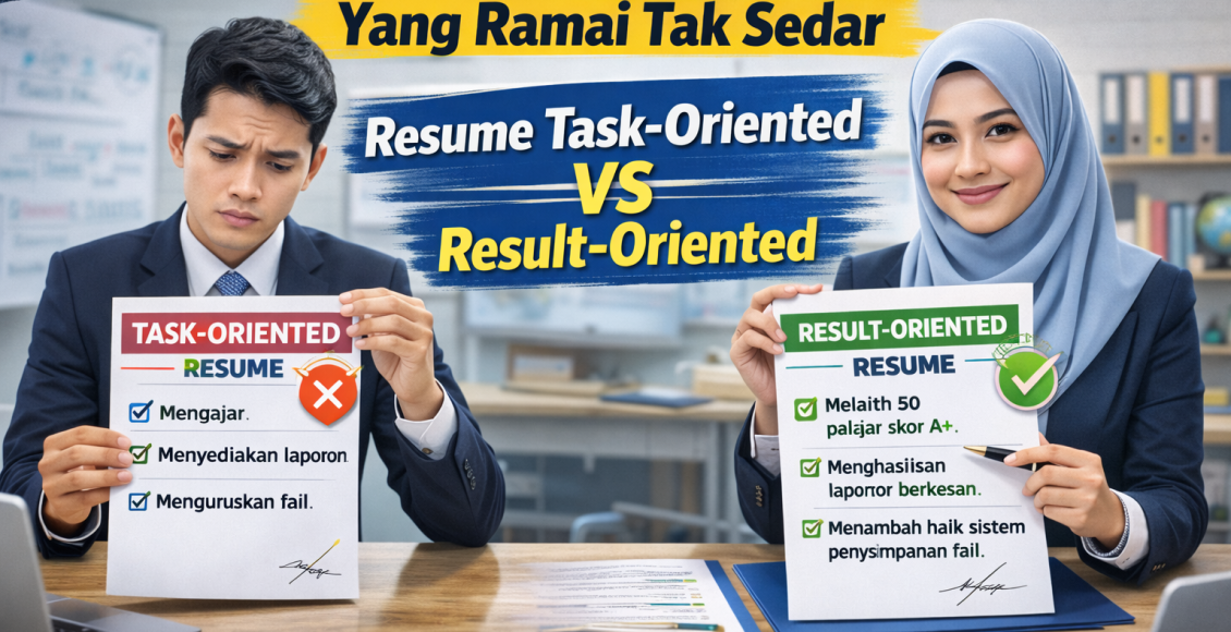 Majikan hari ini tidak sekadar mahu tahu apa yang anda buat, tetapi apa yang anda capai dan sumbangkan. Artikel ini akan menghuraikan secara jelas perbezaan Resume Task-Oriented vs Result-Oriented, kesannya terhadap peluang kerjaya, serta cara membetulkan resume agar lebih kompetitif — khususnya untuk MySTEP, GLC dan sektor swasta.