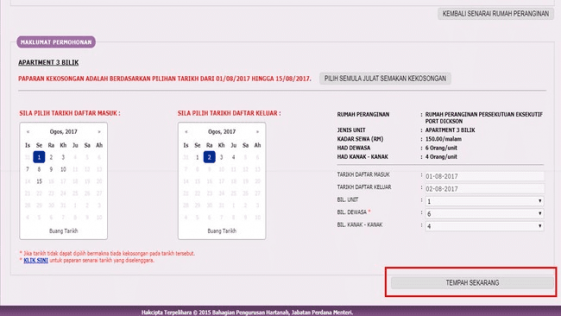 - Semak butiran dan klik TEMPAH SEKARANG untuk langkah berikutnya.