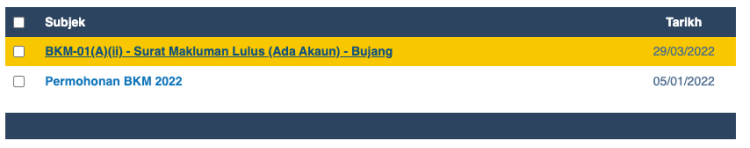- Klik pilihan pertama iaitu BKM-01 (A)(ii) – Surat Makluman Lulus – [kategori diluluskan]