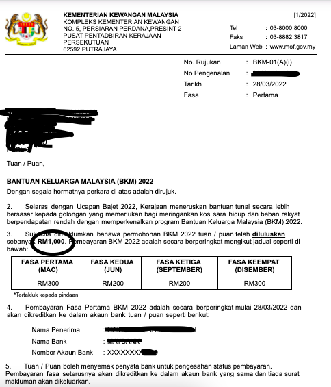 Jelas kan jumlah bantuan yang akan diterima nanti? Selepas ini tiada lagi tanda tanya berapa jumlah yang akan diterima bagi setiap fasa. Surat Makluman ini dikeluarkan untuk rujukan penerima. Bagi pemohon yang TIDAK LULUS permohonan, anda masih berpeluang untuk buat rayuan mulai 1 Mei 2022 nanti.