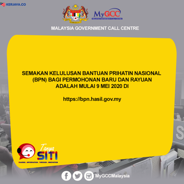 [sc_fs_multi_faq headline-0=”h2″ question-0=”S1: Bilakah Tarikh Semakan Kelulusan Permohonan BPN Baru dan Rayuan Di Buka?” answer-0=”Semakan Kelulusan BPN Bagi Permohonan Baru & Rayuan Bermula 9 Mei 2020 ” image-0=”” headline-1=”h2″ question-1=”S2: Dimana Semakan Kelulusan Permohonan Baru dan Rayuan BPN Boleh Dilakukan?” answer-1=”Untuk makluman, semakan kelulusan bagi permohonan baru dan rayuan boleh di buat laman rasmi BPN iaitu bpn.hasil.gov.my ” image-1=”” headline-2=”h2″ question-2=”S3: Bolehkah Pemohon Membuat Rayuan Semula Jika Permohonan Kali Ini Tidak Lulus?” answer-2=”Sekiranya jika permohonan anda tidak lulus bagi Permohonan Baru atau Rayuan bagi Bantuan Prihatin Nasional maka anda tidak boleh lagi membuat rayuan bagi keputusan tersebut. ” image-2=”” headline-3=”h2″ question-3=”S4: Adakah Keputusan Tidak LULUS Ini Muktamad?” answer-3=”Keputusan semakan yang diberikan adalah kekal dan muktamad. ” image-3=”” headline-4=”h2″ question-4=”S5: Adakah Kerajaan Bercadang Memberi Kelonggaran Rayuan Selepas Ini?” answer-4=”Buat masa ini, rayuan ke atas permohonan BPN yang berstatus Tidak Lulus belum diputuskan oleh kerajaan. Oleh itu sebarang bentuk rayuan adalah tidak dibenarkan buat masa ini. ” image-4=”” headline-5=”h2″ question-5=”S6: Apa Cara Untuk Pemohon Membuat Pertanyaan Lanjut?” answer-5=”Jika anda mempunyai soalan atau pertanyaan lanjut berkaitan dengan BPN. Anda perlu berhubung terus dengan LHDNM di HASIL CARE LINE. 03-8911 1000. ” image-5=”” count=”6″ html=”true” css_class=””]