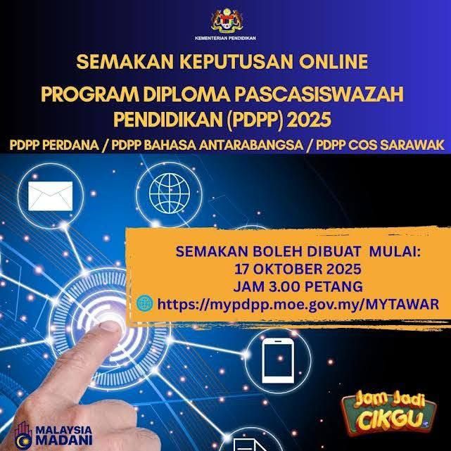 Kementerian Pendidikan Malaysia (KPM) telah mengumumkan bahawa semakan keputusan Program Diploma Pascasiswazah Pendidikan (PDPP) 2025 kini boleh dilakukan secara dalam talian.