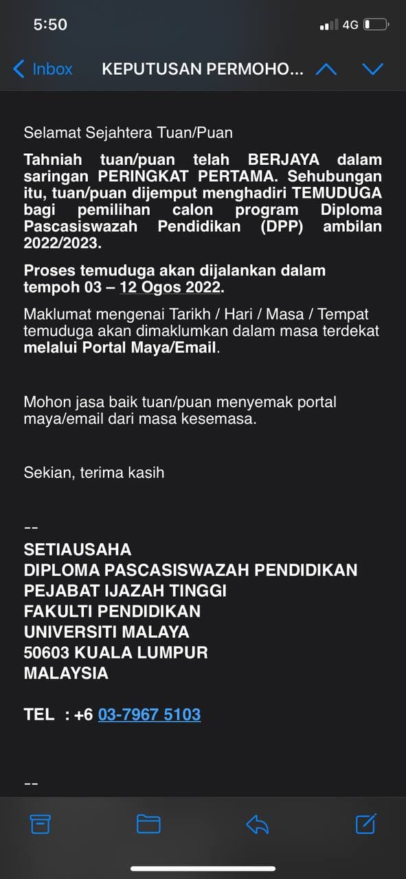 Semakan Panggilan Temuduga Program Diploma Pascasiswazah Pendidikan (DPP) UM