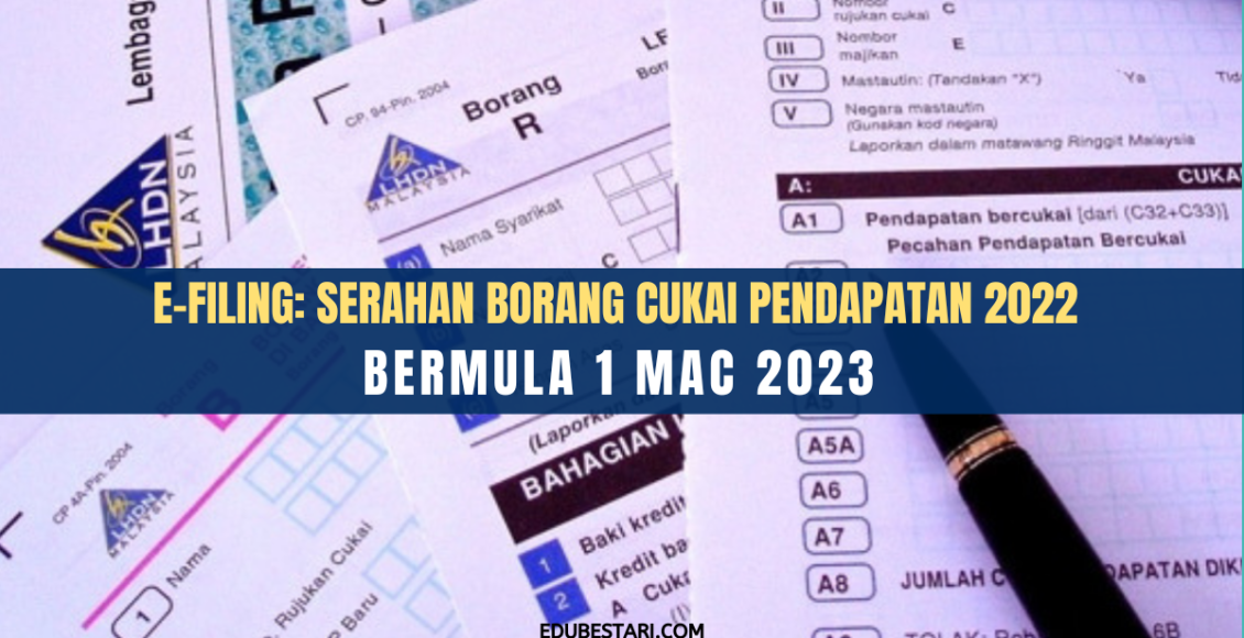 Lembaga Hasil Dalam Negeri Malaysia (LHDNM) telah memaklumkan bahawa pengemukaan Borang Nyata Tahun Saraan 2022 dan Tahun Taksiran 2022 melalui e-Filing bagi Borang E, BE, B, M, BT, MT, TF dan TP boleh dilakukan mulai 1 Mac 2023.