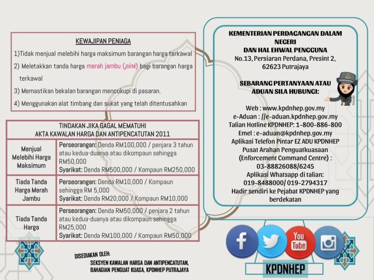 Ikuti perkongsian di bawah untuk semak senarai harga maksimum musim perayaan hari raya yang telah ditetapkan.