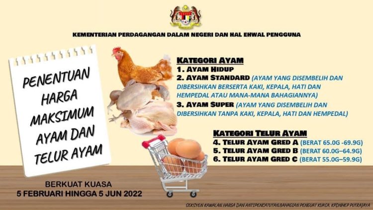Senarai Harga Maksimum Musim Perayaan Bagi Ayam, Telur Ayam, Daging, Hasil Laut, Sayuran & Barang Kering