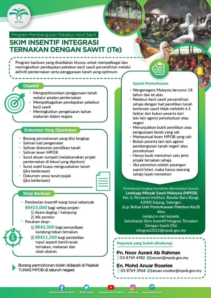 Skim Insentif Integrasi Ternakan Dengan Sawit (ITe) & Skim Insentif Integrasi Tanaman Dengan Sawit (ITa) merupakan insentif yang disediakan oleh Lembaga Minyak Sawit Malaysia (MPOB) di bawah Program Pembangunan Pekebun Kecil Sawit.