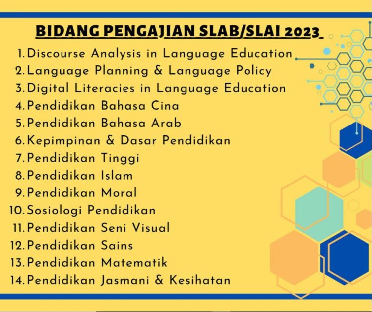 Fakulti Pendidikan Universiti Malaya ingin mempelawa calon-calon yang berkelayakan dan memenuhi kriteria untuk bidang-bidang yang disenaraikan sahaja untuk memohon Skim Latihan Bumiputera (SLAB) / Skim Latihan Akademik IPTA (SLAI) & Pasca Kedoktoran bagi tahun 2023.