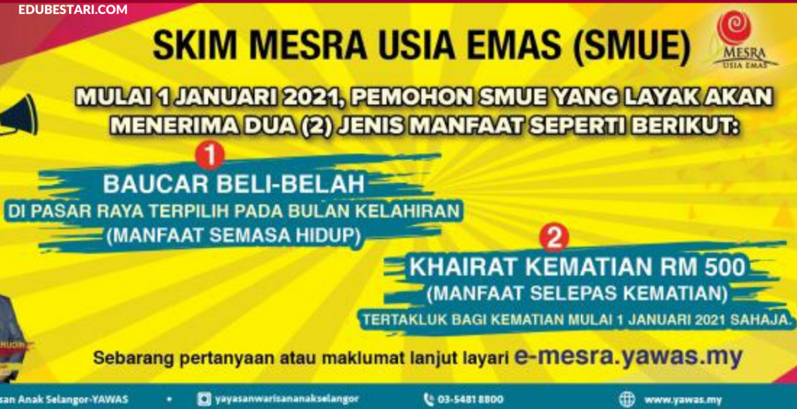 Syarat-syarat kelayakan untuk memohon Skim Mesra Usia Emas SMUE adalah:
